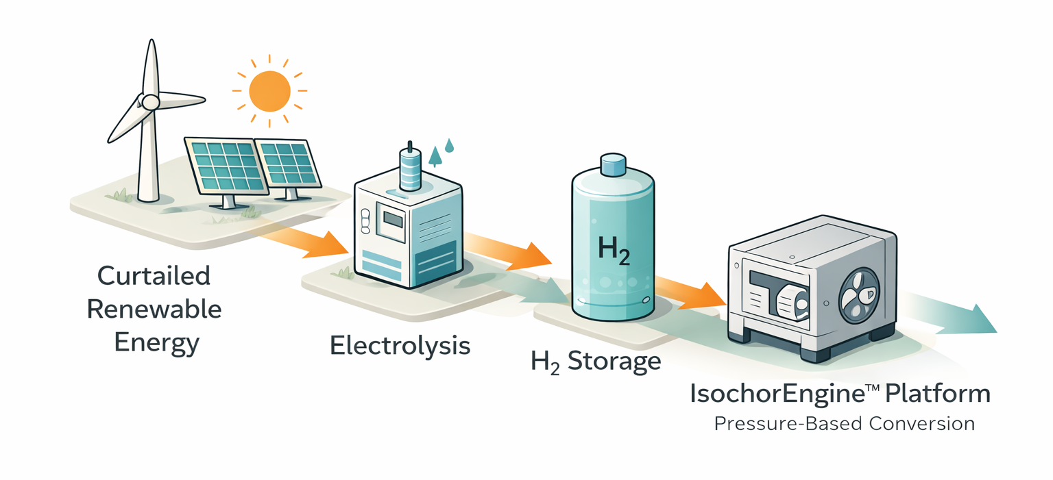 The IsochorEngine™ platform provides a technical foundation for pilot-scale deployment and system-level learning, informing how pressure-based conversion concepts may contribute to renewable curtailment reduction and resilient power system operation.